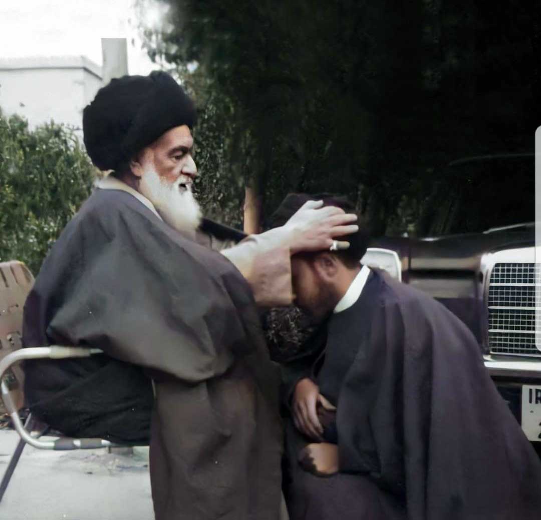 چنین مِکانت و فخامتی دارد این سیدِ خویی. او در این تصویر، طلبهای را ملبس به لباس روحانیت میکند. در این دنیای محنتزدهی صنعتزده، به تن کردن چنین جامهای هم ارادهای پولادین میطلبد. اقتدار صنعت چنان در گرفته است که صغیر و کبیر را با خود همراه میکند. و شاید روحانیت را هم گاه به وسوسهای میاندازد. در همین تصویر، خودرویی در گوشهی تصویر خودنمایی میکند. به نظر مرغوب و اَعلی میآید. گویی تضاد و تناقضی را در این محفل روحانیان به نمایش میگذارَد. از سویی جامهی سنتی بر تن سیدی میرَوَد و از سویی دگر، یکی از مدرنترین دستاوردهای بشری رُخنمایی میکند.
